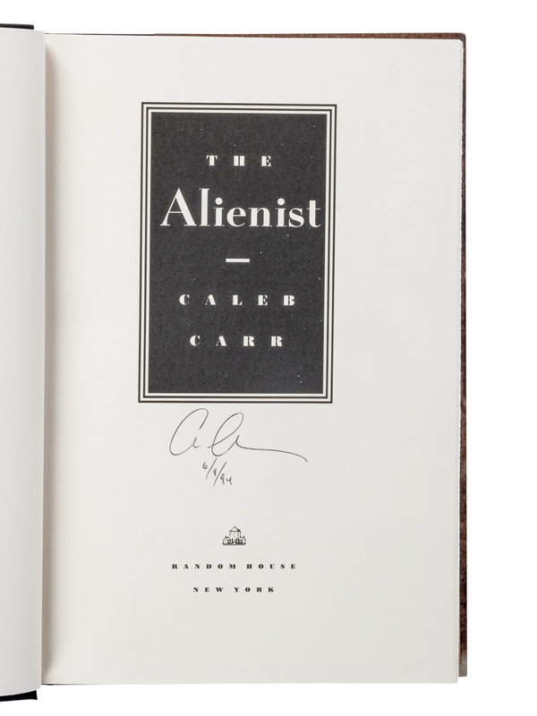 1) CARR, Caleb. The Alienist. New York: Random House, 1994. 8vo. Publisher's cloth; original dust jacket. SIGNED BY CARR on title page.