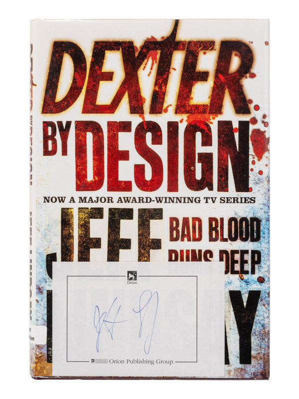 4) LINDSAY, Jeff. Dexter By Design. London: Orion Books, 2009. 8vo. Publisher's cloth; original dust jacket. FIRST BRITISH EDITION, SIGNED BY LINDSAY on unattached bookplate.