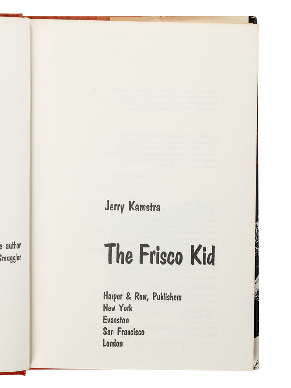 3) KAMSTRA, Jerry. The Frisco Kid. New York: Harper & Row, 1975. 8vo. Publisher's cloth; original dust jacket. FIRST EDITION.