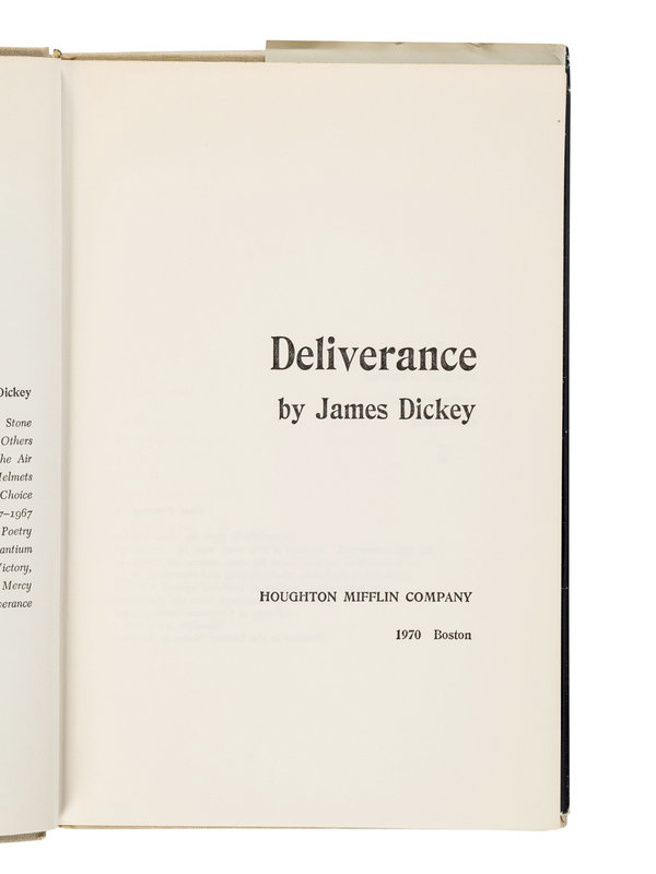 1) DICKEY, James. Deliverance. Boston: Houghton Mifflin Company, 1970. 8vo. Publisher's cloth; original dust jacket. FIRST EDITION.