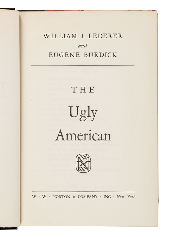 4) LEDERER, William J. and BURDICK, Eugene. The Ugly American. New York: W.W. Norton & Company, Inc., 1958. 8vo. Publisher's cloth; original dust jacket. FIRST EDITION.