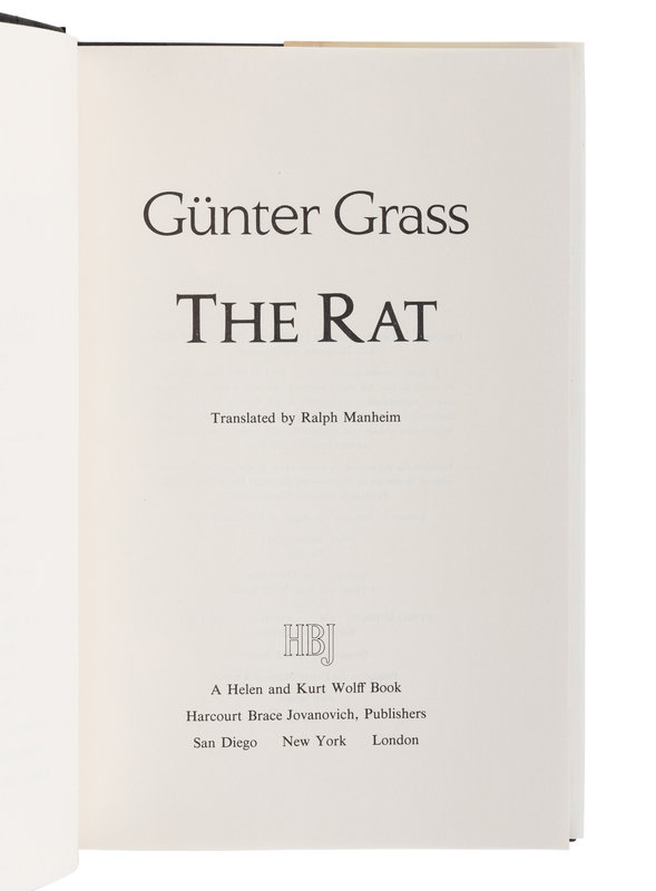 13) GRASS, Gunter. The Rat. New York et al: Harcourt Brace Jovanovich, 1986. FIRST EDITION. SIGNED BY GRASS.