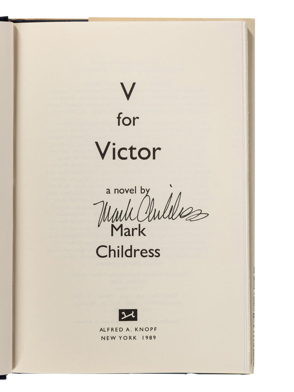 8) CHILDRESS, Mark. V for Victor. New York: Alfred A. Knopf, 1989. FIRST EDITION. SIGNED BY CHILDRESS.