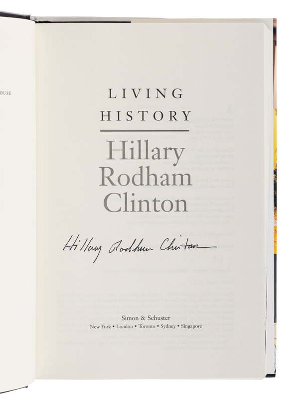 [With:] CLINTON, Hillary Rodham. Living History. New York: Simon & Schuster, 2003. Original cloth; publisher's dust jacket. FIRST EDITION with spurious signature not in Clinton’s hand.