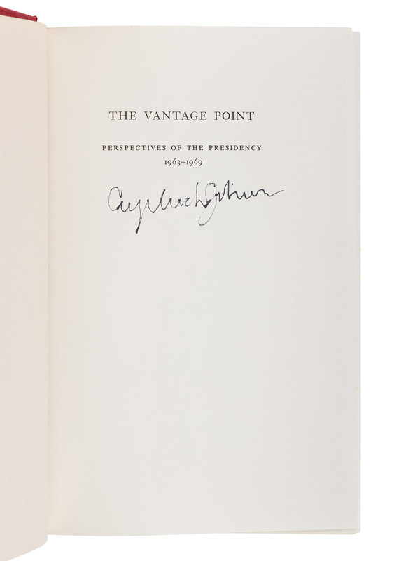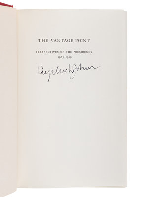 [With:] JOHNSON, Lyndon Baines. The Vantage Point: Perspectives on the Presidency 1963-1969. New York: Holt, Rinehart, & Winston, 1971. Original cloth; publisher's dust jacket. FIRST EDITION with spurious signature not in Johnson’s hand.