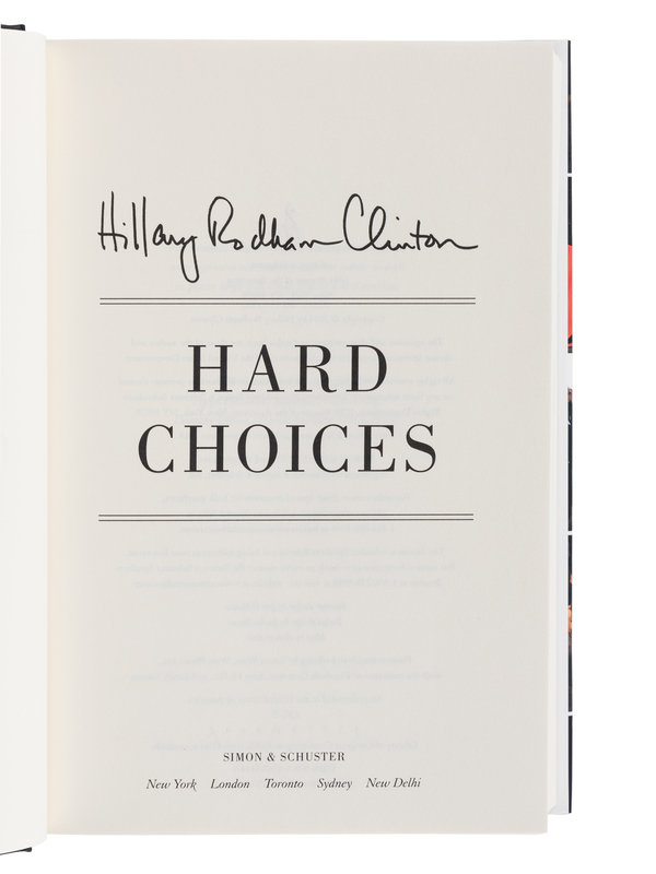6) CLINTON, Hillary Rodham. Hard Choices. New York: Simon & Schuster, 2014. Original cloth; publisher's dust jacket. FIRST EDITION.