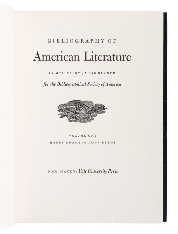 [AMERICAN LITERATURE -- REFERENCE]. BLANCK, Jacob (1906-1974) (Editor) Bibliography of American Literature. New Haven: Yale University Press, 1955.