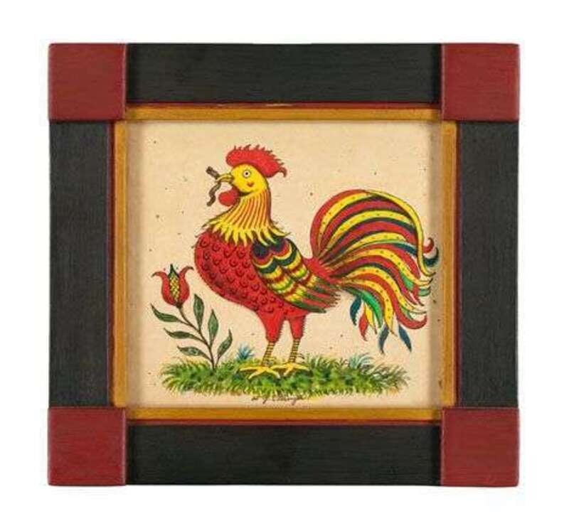 Signed "D. Y. Ellinger", watercolor and ink on paper, original painted frame.