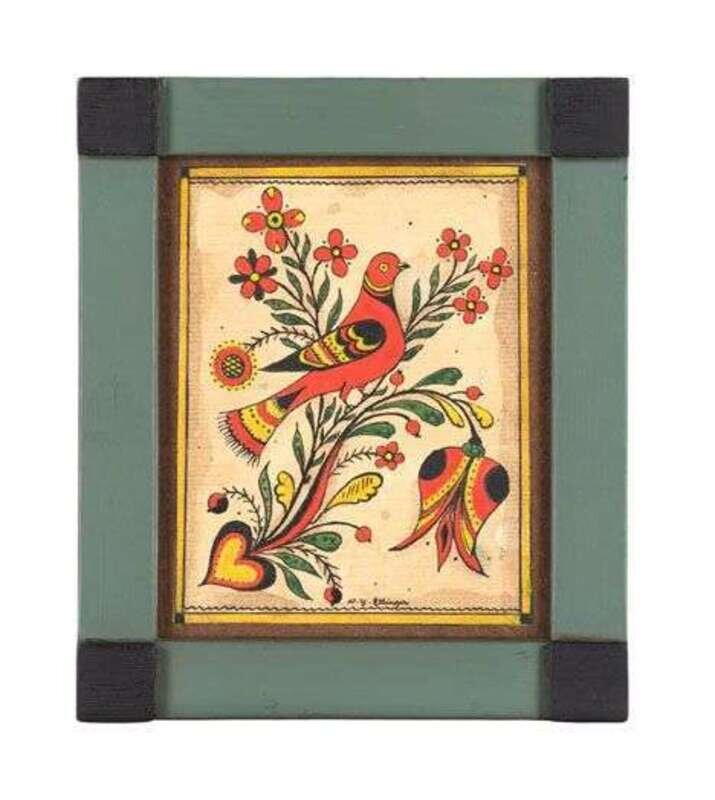 Signed "D.Y. Ellinger", watercolor and ink on paper, original painted frame.