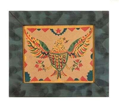Watercolor, ink and cut -out on paper, smoke-grained frame.