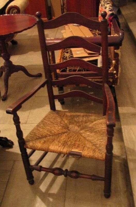 Ladder back rush-seat arm chair delaware valley, 18th century