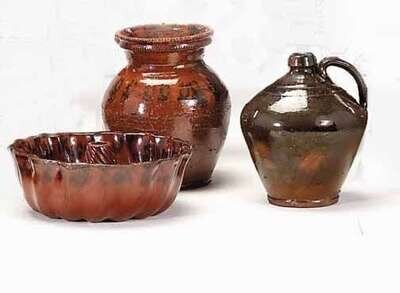 Including a mold with manganese splotches, a baluster form jar with notched rim and manganese splotches at shoulders and an ovoid jug with gonic splotches.