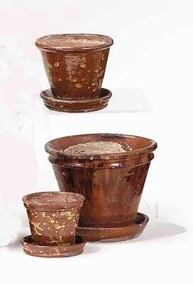 Three glazed redware flowerpots pennsylvania,19th/20th century