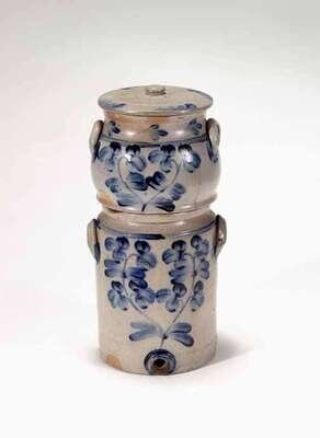 Cobalt-decorated stoneware three-part water cooler philadelphia or baltimore second half 19th century