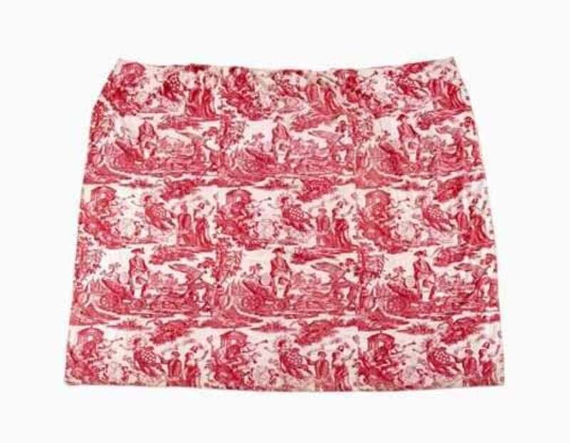 The "Apotheosis of Franklin and Washington " printed in red on a cotton ground, comprised of three panels. Note: A length of this fabric is included in the current Benjamin Franklin Tercentenary exhibition and pictured in the exhibition catalogue, "Benjamin Franklin In Search of a Better World," December 2005- March, 2008.