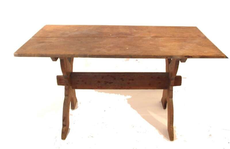 The rectangular top above shaped crossed ends joined by turned stretcher.