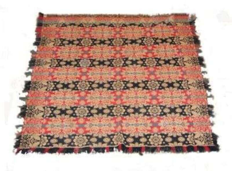 Woven wool and cotton jacquard coverlet "made by david steiner brecknock township lancaster county patent" 19th century