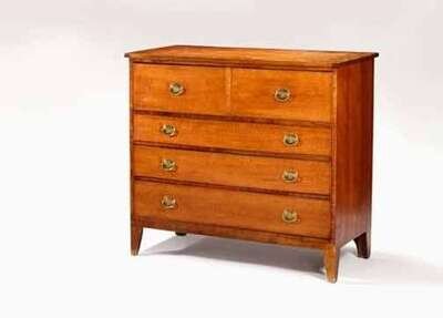 Rectangular case above deep drawer with faux double drawer molding and three graduated drawers, all cock-beaded, bracket feet.