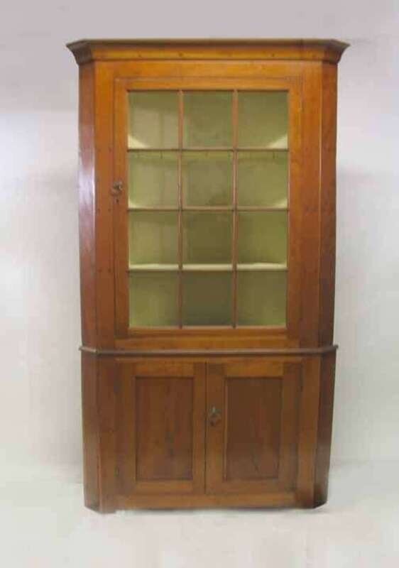 Cherrywood two part corner cabinet 19th century