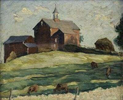 BERNARD BADURA (AMERICAN 1896-1986) "RED BARN"