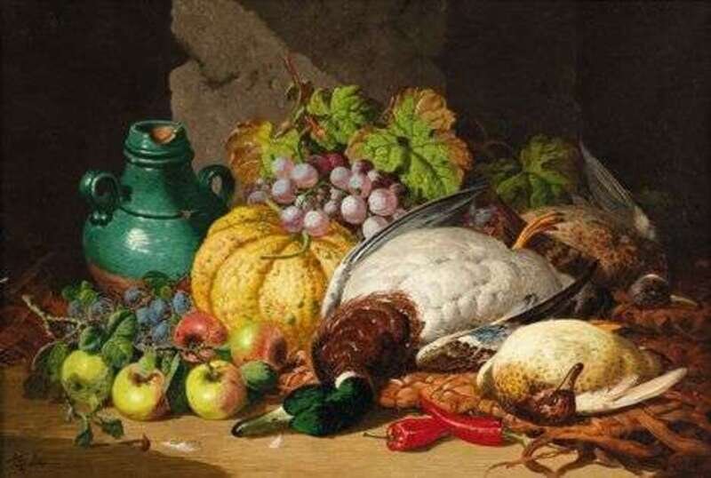 CHARLES THOMAS BALE (BRITISH FL. 1866-1890) STILL LIFE WITH DEAD GAME AND FRUIT