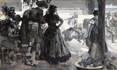 Signed and dated "W. RUSSELL FLINT / 1907" bottom right, watercolor and gouache en grisaille