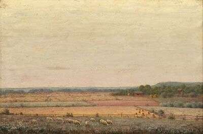 GEORGE T. HETZEL (AMERICAN 1846-1906) SHEEP GRAZING IN A LANDSCAPE