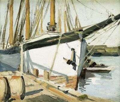 HENRY BAYLEY SNELL (AMERICAN 1858-1943) AT THE HARBOR