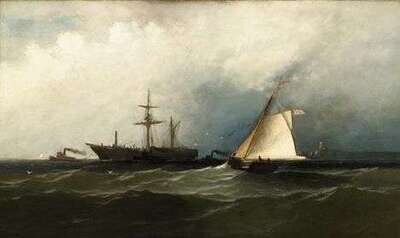 MANNER OF XANTHUS RUSSELL SMITH (AMERICAN 1839-1929) SHIPPING OFF THE COAST