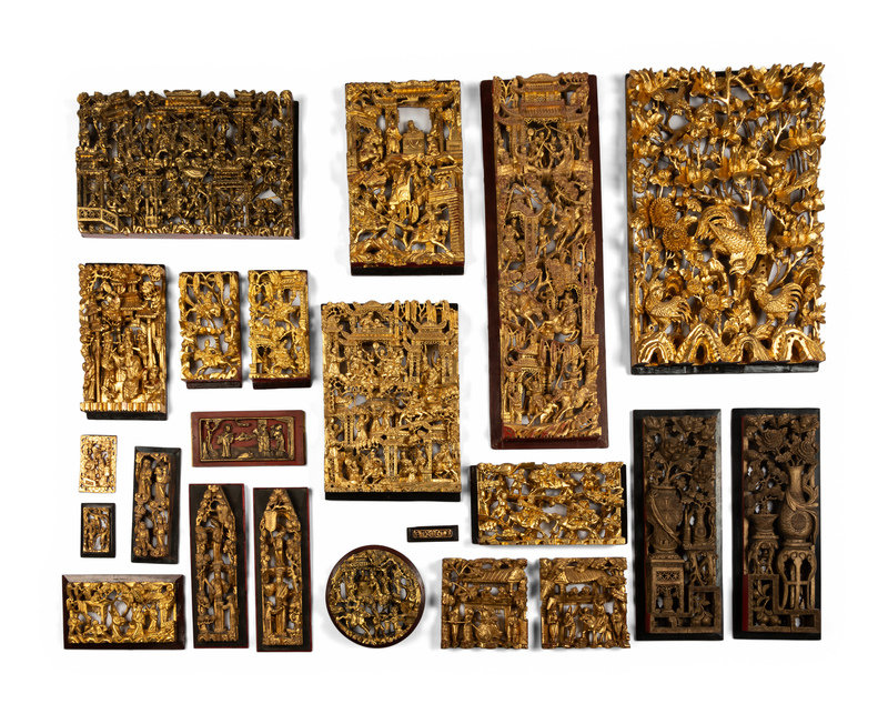 22 Chinese Carved Gilt Wood Wall Panels