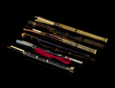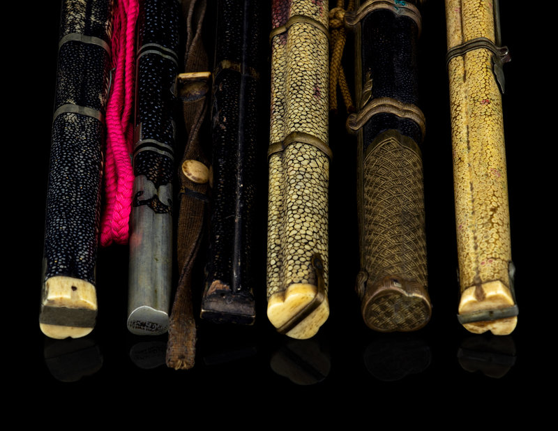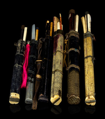Six Chinese Sharkskin Knife and Chopsticks Sets