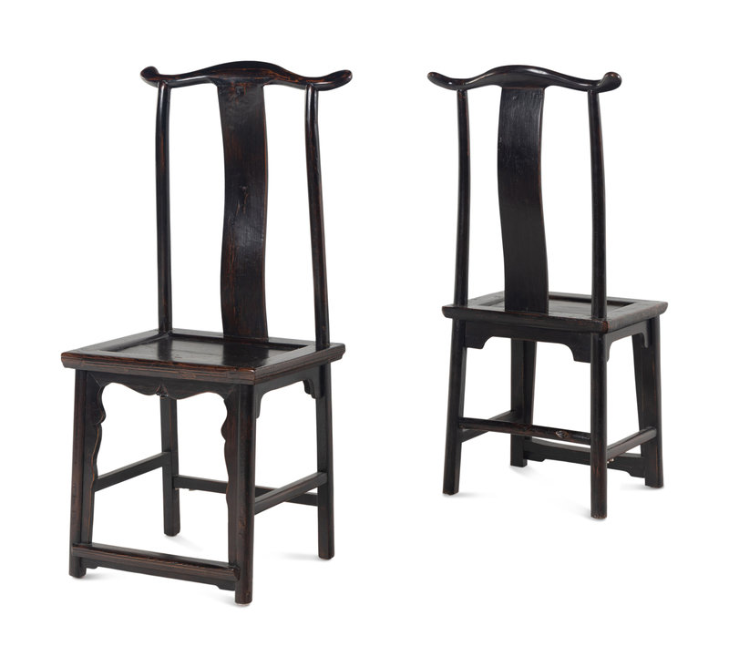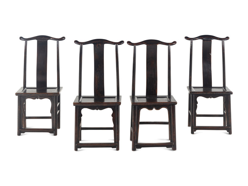 A Set of Four Chinese Black Lacquered Nanmu Side Chairs, Dengguayi