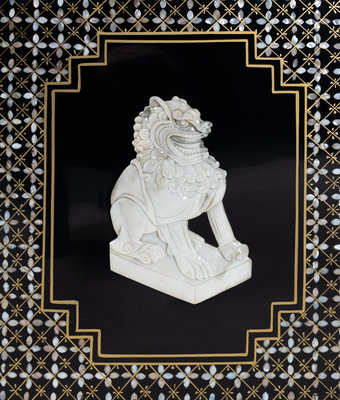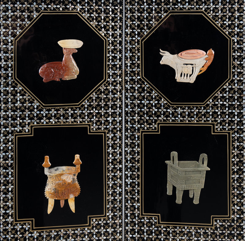 each panel inlaid with four bogu motifs, all against a mother of pearl ground.