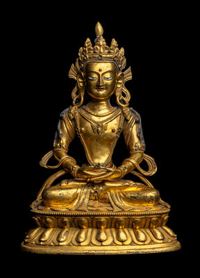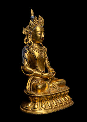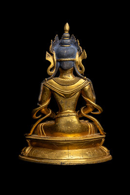 the figure depicted seated in dhynasana on a double lotus base,.