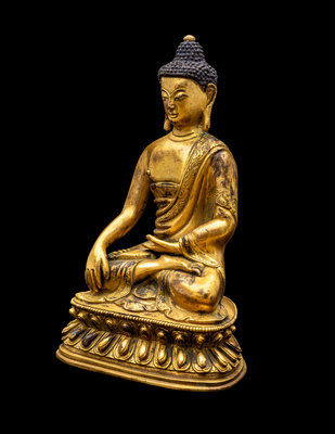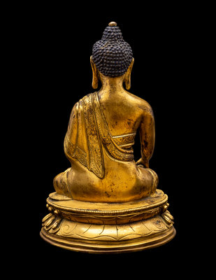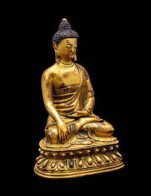 A Sino-Tibetan Gilt Bronze Figure of Seated Buddha
