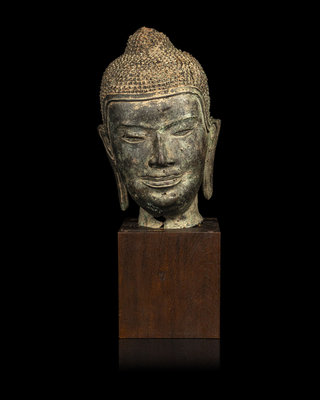 A Thai Bronze Head of Buddha
