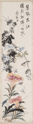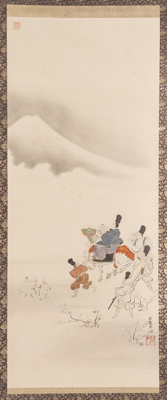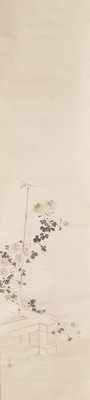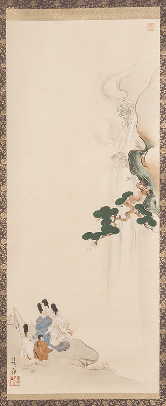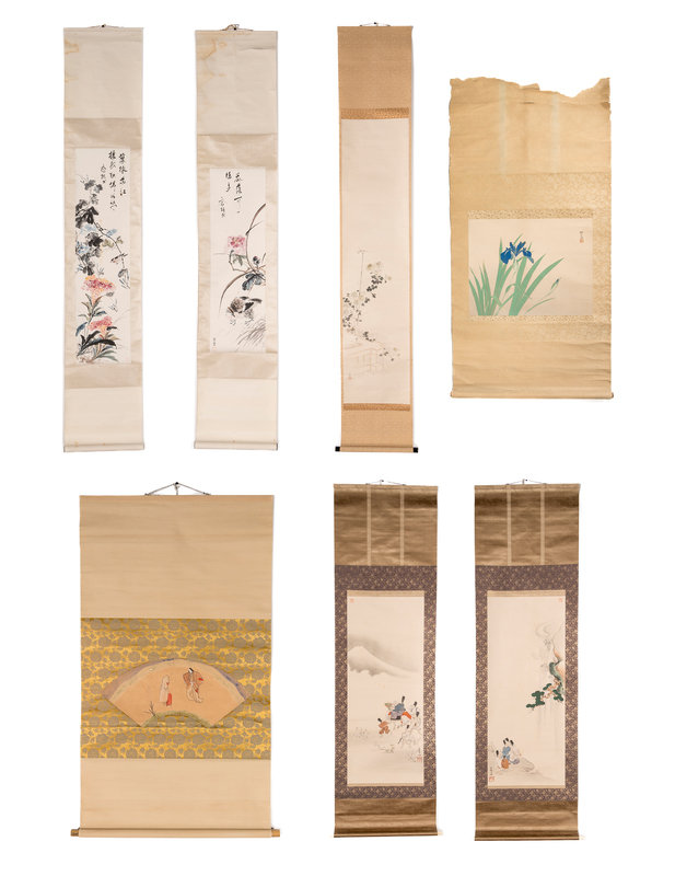 ink and color on paper, seven hanging scrolls