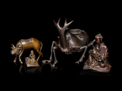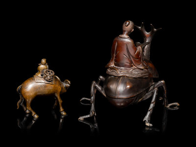 Two Japanese Bronze 'Figural' Incense Burners