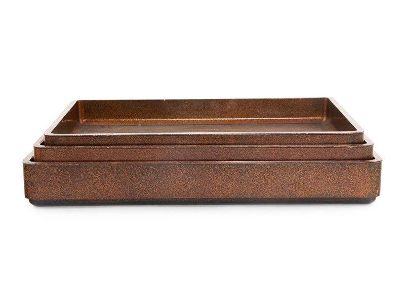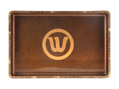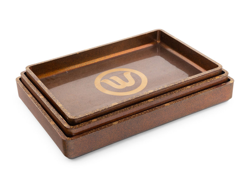 with rounded corners and foliate-decorated edges, each decorated with a mon. Finely polished.
