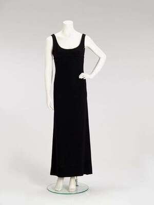 Norman Norell black wool crepe sleeveless column gown 1960s