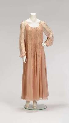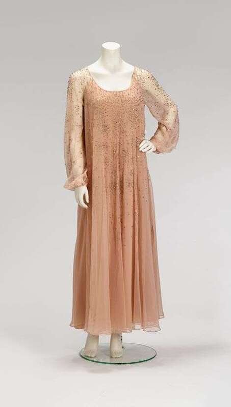 Jean-Louis nude silk beaded evening gown late 1960s