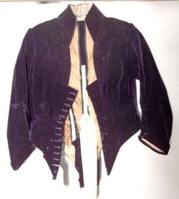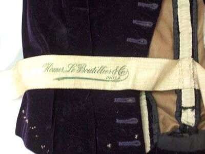 Swiss front with small stand-up collar, weighted hem and peplum; with internal belt labeled "Homer, Le Boutillier & CO., Phila."
