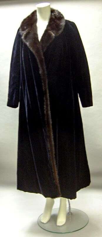 Long velvet mink-trimmed opera coat 1950s