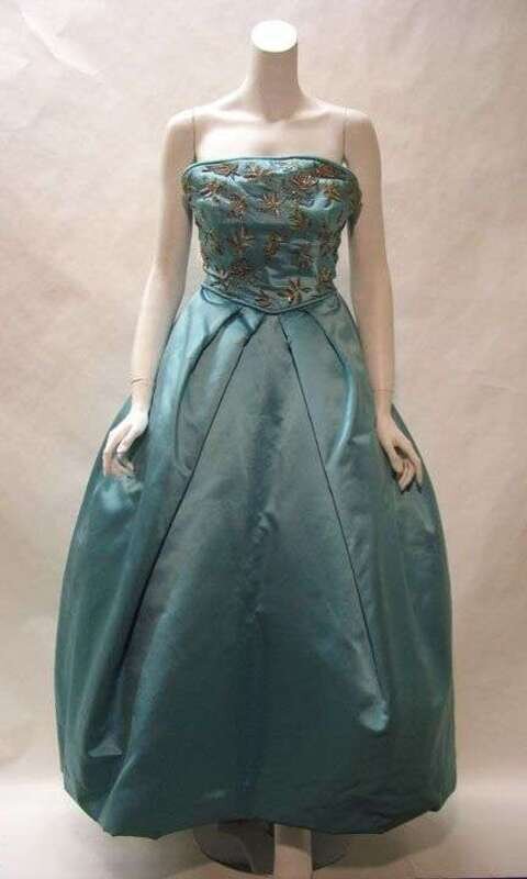 Simonetta turquoise silk satin strapless couture ball gown 1960s