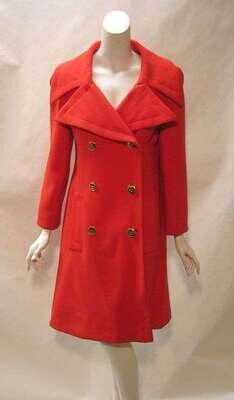 Pierre Cardin begonia red wool pea coat 1960s