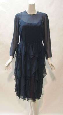 Bill Blass navy blue chiffon dress 1980s