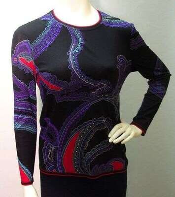 Six dresses, five in silk and one in cotton, and two pull-over blouses. In various prints and patterns, including a feathery animal print, polka-dots, Hawaiian-esque florals, etc.