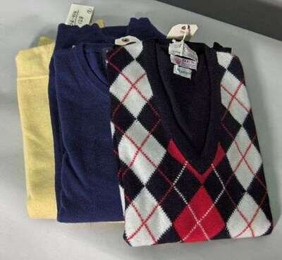 One royal blue, one yellow, and one in argyle intarsia.