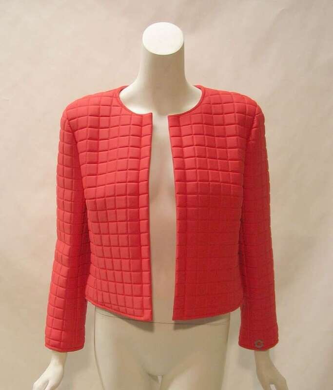 Open-front and no closures, all-over checkerboard quilting. Labeled "Chanel Identification," size 44.