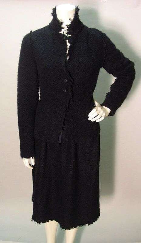Lanvin black boucle skirt suit winter 2002
